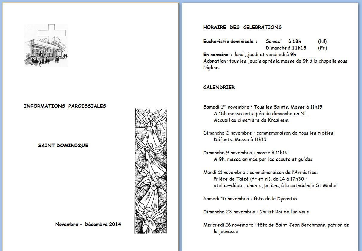 Les infos paroissiales de novembre et décembre 2015