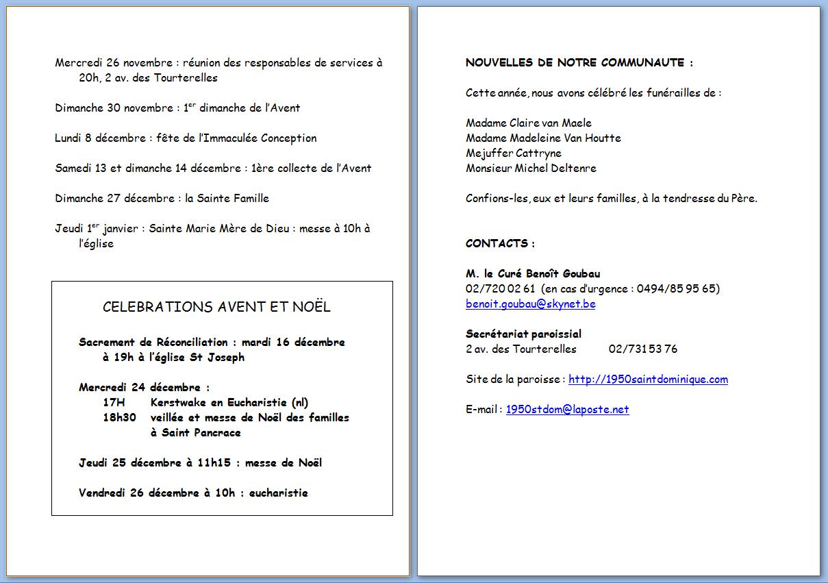 LES INFOS PAROISSIALES DES MOIS DE NOVEMBRE ET DÉCEMBRE