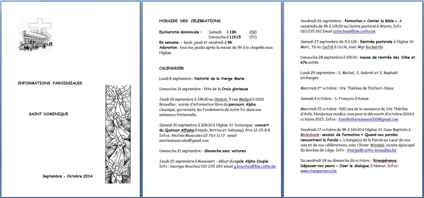 Les infos paroissiales de septembre et octobre 2015